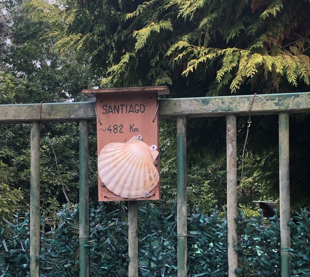 Quand je sors un petit groupe de marcheurs est assis à l’abri sur la table de jardin en bois. Je ne le remarque pas de suite mais un minuscule petit chien blanc tout fluffy siège en maître sur la table. C’est lui le centre de l’attention. Toutes les mains se baladent sur son pelage soyeux. Les pèlerins sont au paradis. On dirait un amas de téléphones portable branchés sur un chargeur multi-prises. Combien de pèlerins ce petit chien à t’il déjà rechargé sur sa courte vie?